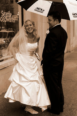 Me hanging out on our little back patio...and yes, I'm in my wedding dress. Hee...I always said I wanted to wear my dress on my anniversary and have a glass of champagne...done. Though the dress was admittedly a bit tighter, I was still able to get her on, yahoo!